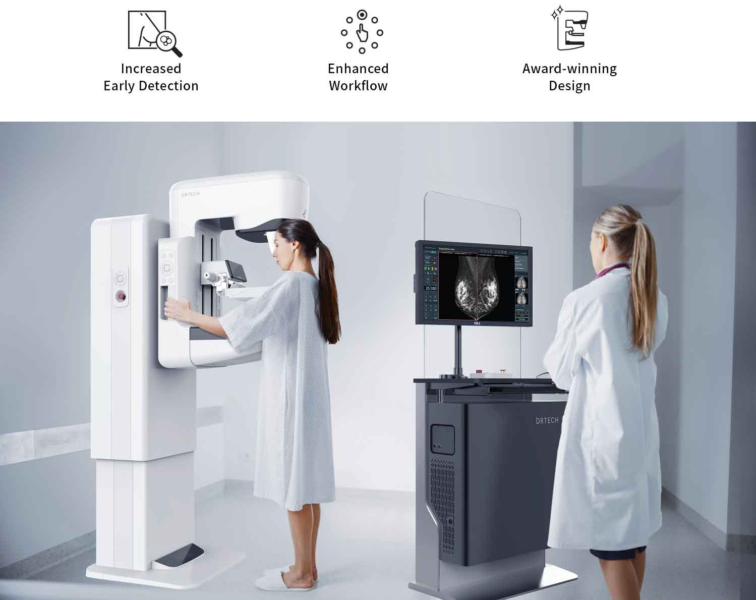 O AIDIA TD da DRTECH é um sistema de mamografia digital de campo total (FFDM) que combina alta resolução de imagem com funcionalidades avançadas, visando aprimorar a precisão diagnóstica e proporcionar conforto tanto para os profissionais de saúde quanto para as pacientes.